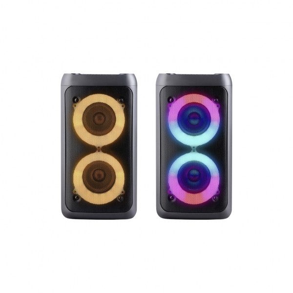 Два 3-дюймові динаміки відтворюють чистий та виразний звук з загальною потужністю 20 Вт. Світлодіодне підсвічування додає звучанню нових відтінків та створює динамічну атмосферу.