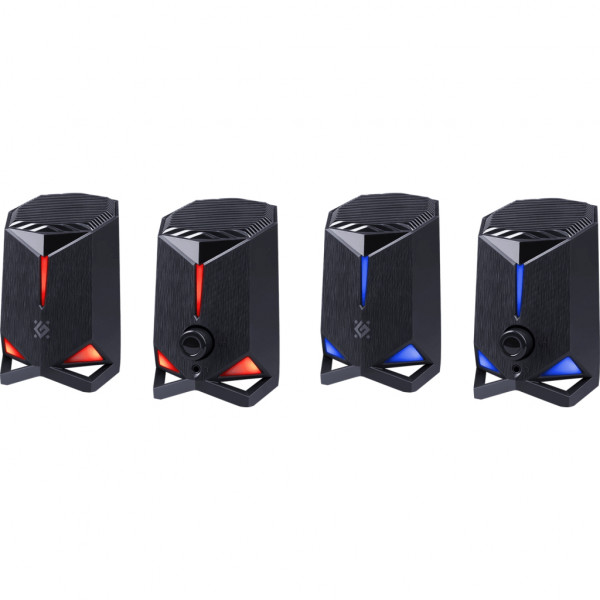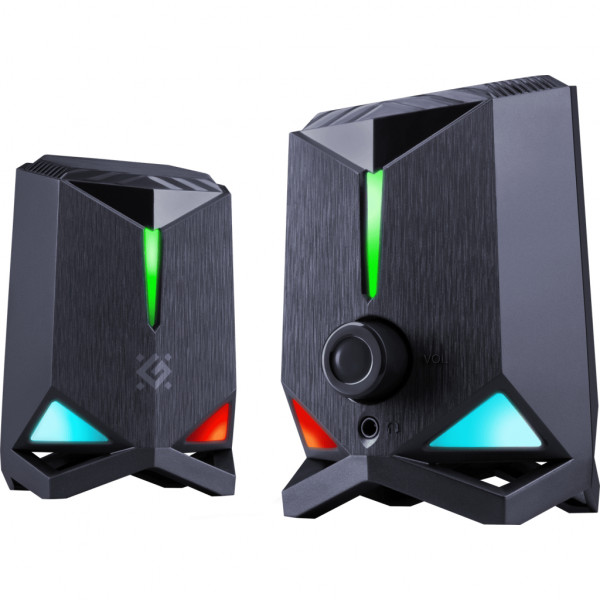 Ігрові комп'ютерні колонки зі світлодіодним підсвічуванням. На передній панелі є регулятор гучності з вбудованим перемикачем та роз'єм для навушників.