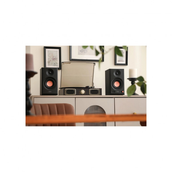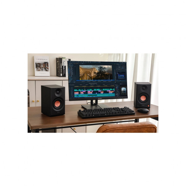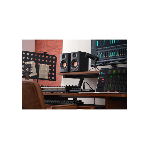 Високоякісні 3,5-дюймові НЧ/СЧ-динаміки та 1-дюймові твітери з шовковим куполом забезпечують сумарну потужність 2 × 18 Вт (RMS) та піковий рівень гучності до 92,5 дБ. Цього достатньо як для роботи з близької відстані, так і для озвучення середнього приміщення.