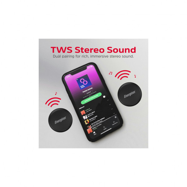 Акустична система Energizer BTS055 відповідає стандарту IPX6, вона витримує підвищений рівень вологи. Слухайте музику, спілкуйтесь по телефону навіть у дощові дні.