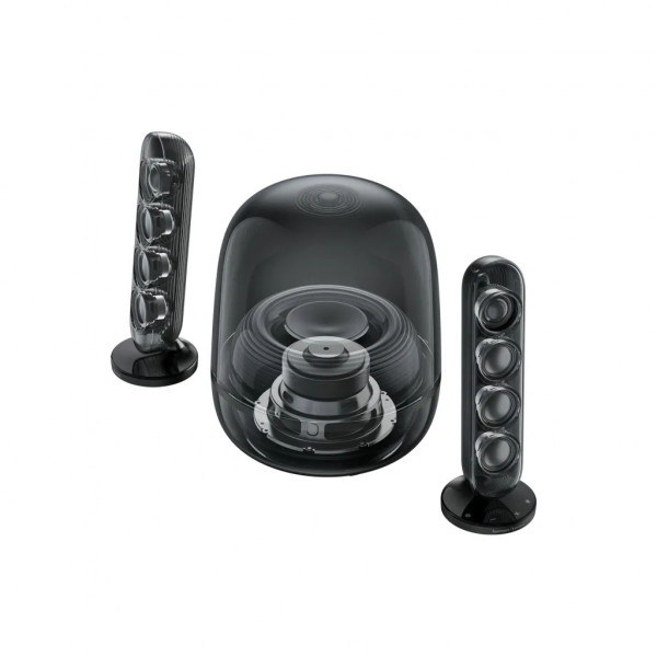 SoundSticks 5 — це оновлена версія культового дизайну SoundSticks із повністю прозорим куполом у стильних відтінках на ваш вибір, підкресленим вишуканими металевими акцентами. Піднятий сабвуфер додає зовнішньому вигляду елегантності, а продумані елементи, як-от витончений острівець підключення та інтуїтивне сенсорне керування на основі правої колонки, роблять використання максимально простим і зручним.