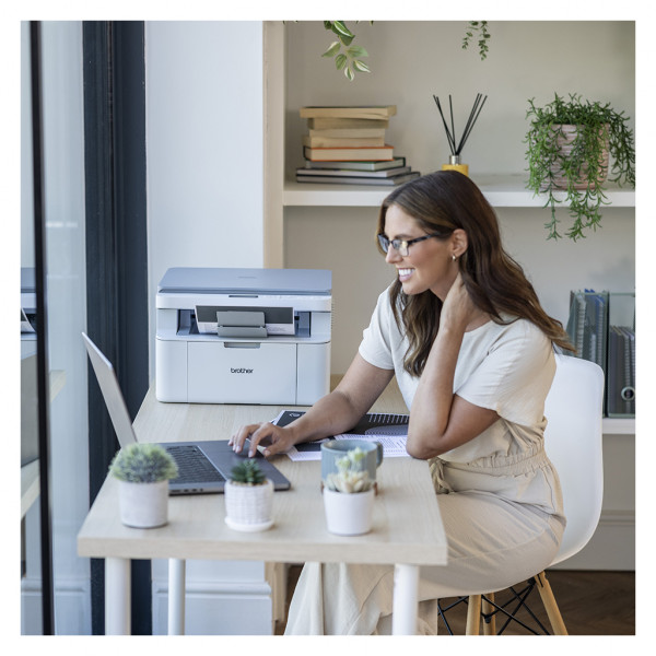 Компактний багатофункціональний пристрій DCP-L1630W, розроблений для невеликих приміщень, ідеально підходить для дому та невеликих офісів. Він оснащений гнучкими можливостями підключення для простого налаштування та використання. Налаштуйте та використовуйте пристрій за допомогою програми Brother Mobile Connect і низки гнучких варіантів підключення, включаючи Wi-Fi 5 ГГц, Fast Ethernet і USB.