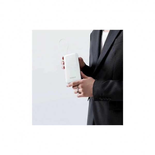 Baseus Bipow 2 оснащений двома вихідними портами (USB та USB-C) та вбудованим кабелем, що дозволяє заряджати до трьох пристроїв одночасно. Це оптимальне рішення для тих, хто користується кількома гаджетами або хоче поділитися енергією з іншими.
