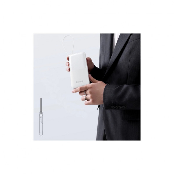 Baseus Bipow 2 вирізняється стильним білим корпусом та ергономічною формою. Компактні розміри дозволяють легко носити його у кишені чи невеликій сумці, завжди маючи додаткове джерело енергії під рукою.