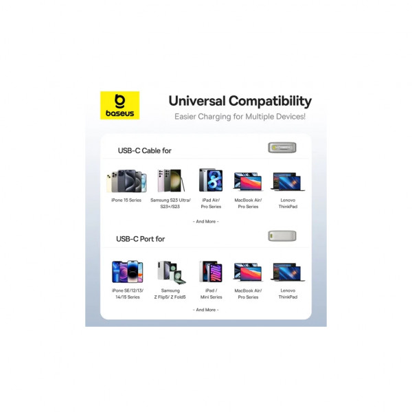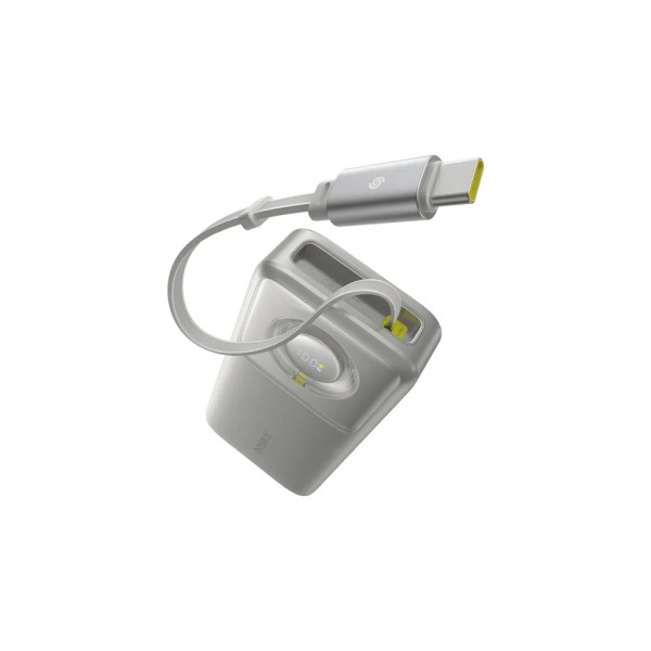 Зовнішній акумулятор Baseus 65 Вт поставляється з вбудованим кабелем USB-C довжиною 2.3 фута (0.7 м). Потягніть за висувний кабель USB-C, щоб відрегулювати довжину кабелю, а потім потягніть його знову, щоб втягнути та прибрати. Попрощайтеся зі сплутаними кабелями та безладним середовищем заряджання.