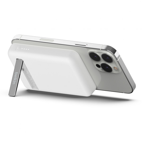 Зовнішній акумулятор для бездротової зарядки, ємність 5000 мАг, сумісний із MagSafe, який не блокує камеру iPhone і дозволяє використовувати телефон під час заряджання. Маленький, тонкий, він ідеально підходить для швидкого збільшення ємності батареї в дорозі, подорожі або як резервне джерело живлення.