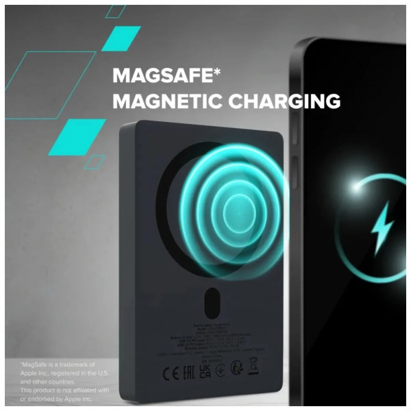 Функції заряджання включають MagSafe, Power Delivery (PD), Qi бездротову зарядку та швидку зарядку, що дозволяє заряджати сучасні смартфони та інші гаджети з максимальною ефективністю. Індикація на дисплеї забезпечує зручний контроль рівня заряду. Захист від перегріву, перезарядки та короткого замикання гарантує безпечну експлуатацію.
