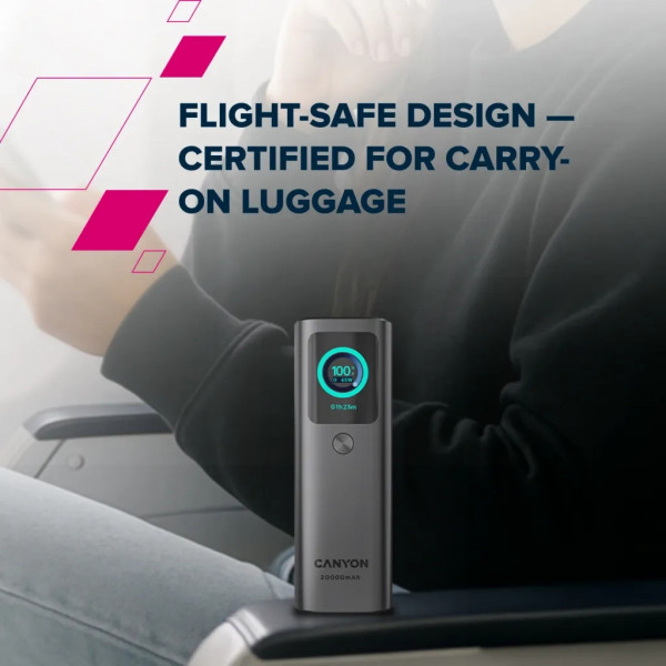 Павербанк оснащений двома USB-C портами, кожен з яких підтримує потужність до 100 Вт, а також додатковим USB-A портом. Загальна вихідна потужність сягає 165 Вт, що дозволяє швидко заряджати ноутбук, телефон або декілька пристроїв одночасно без втрати ефективності. Завдяки підтримці швидкого заряджання самого акумулятора до 65 Вт, час на відновлення його заряду зведено до мінімуму.