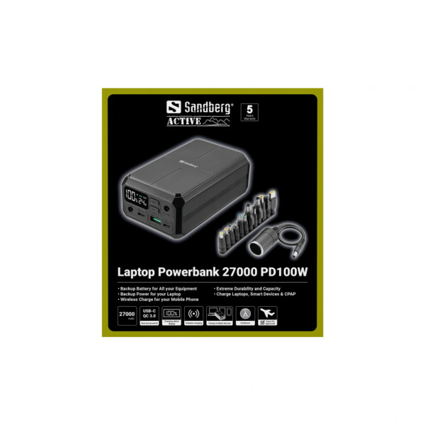 Універсальна мобільна батарея Sandberg 27000mAh Laptop - це чудове рішення для поповнення заряду більшості типів мобільних пристроїв, зокрема й ноутбуків, в рекордно короткий час.