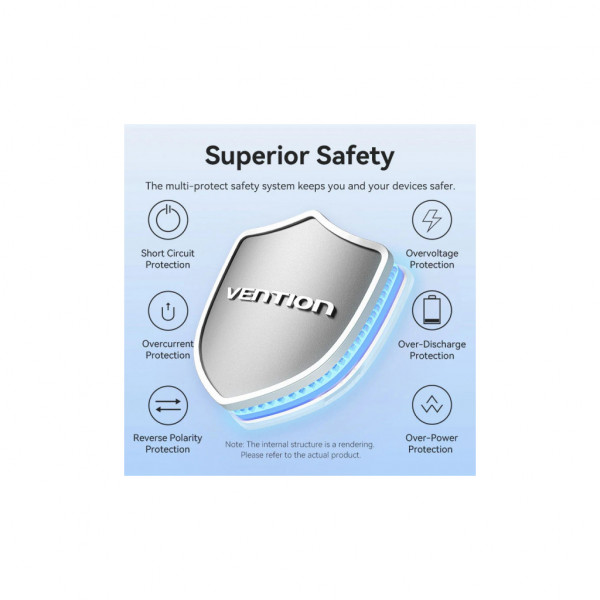 Вбудований захист від короткого замикання, перенапруги, перевантаження по струму та інших потенційних небезпек робить безпечною експлуатацію УМБ Vention 20000mAh 22,5W Fast Charging.