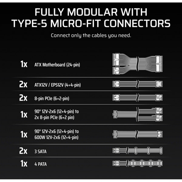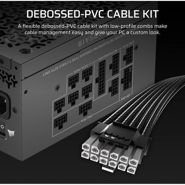 Повністю модульні блоки живлення CORSAIR RMx SHIFT Series оснащені революційним запатентованим бічним кабельним інтерфейсом, який забезпечує легкий доступ до всіх ваших з’єднань, забезпечуючи винятково зручне та ефективне живлення за стандартом 80 PLUS Gold.