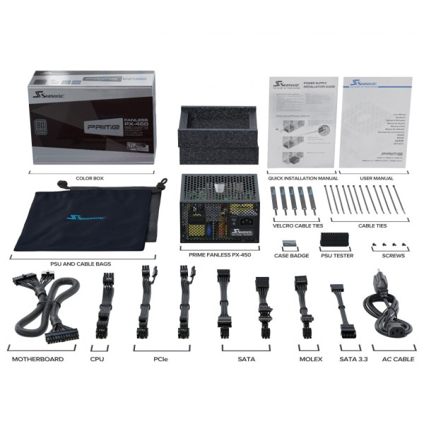 Seasonic PRIME Fanless PX 500W — це поєднання абсолютної тиші, високої енергоефективності та стабільного живлення. Він органічно доповнює флагманську лінійку безвентиляторних блоків живлення від Seasonic і орієнтований на користувачів, які хочуть побудувати надійну, тиху та довговічну систему без компромісів.