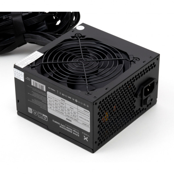 Основною особливістю Vinga 550W є його активний модуль PFC (Power Factor Correction), який значно зменшує нагрів деталей, підвищуючи тим самим їх надійність і довговічність. Цей модуль працює над покращенням коефіцієнта потужності, що є важливим для підтримання ефективної та стабільної роботи системи. Оптимальний контроль температури забезпечується за рахунок вбудованого вентилятора діаметром 120 мм, який автоматично регулює свою швидкість відповідно до навантаження, забезпечуючи тишу і прохолоду.