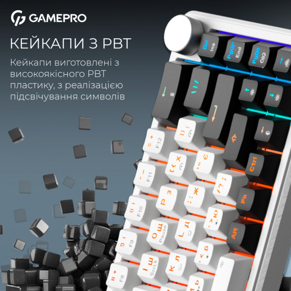 Клавіатура GamePro Asgard Valhalla MK210W Pro 65 RGB Wireless/Bluetooth/USB White (MK210W Pro)