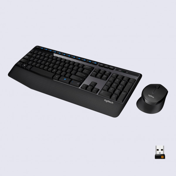 Комплект Logitech MK345 складається з повнорозмірної клавіатури та зручної миші для правої руки. Клавіатура має ефектне глянсове покриття й надійно захищена від потрапляння всередину вологи *. Крім того, вона доповнена зручною текстурованою підставкою для зап'ястків і світловим індикатором Caps Lock. Миша обладнана індикатором низького рівня зарядження батарей і великим коліщатком прокручування. Вбудований датчик дає змогу точно позиціювати курсор і плавно його переміщати. Технологія бездротового зв'язку забезпечує надійність на рівні дротових під'єднань і повну свободу від сплутаних кабелів. Пристрої ощадно споживають енергію, що дало змогу продовжити термін експлуатації батарейок до 36 місяців для клавіатури та до 18 місяців для миші **. 12 вдосконалених F-клавіш дають змогу швидко вимкнути звук на комп'ютері, перейти до наступної пісні або тимчасово зупинити відтворення відео ***.