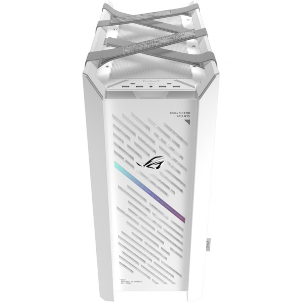 Asus ROG Strix Helios II - це преміальний ігровий корпус середнього розміру з подвійними боковими панелями із загартованого скла, вишуканою алюмінієвою рамою та передньою панеллю з ромбоподібною решіткою та 3D-фільтром. Він постачається з чотирма попередньо встановленими вентиляторами 140 мм, що забезпечують оптимізований повітряний потік та покращені теплові характеристики для вимогливих ігрових систем. Розроблений для розширення та високої продуктивності, він готовий до материнських плат від ITX до EATX, а також до серйозних систем водяного охолодження, що робить його ідеальним вибором для класичної збірки ROG.