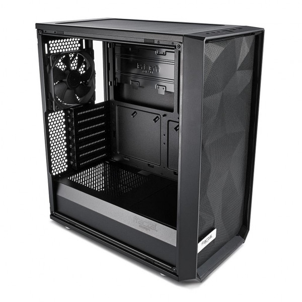 Одна з головних переваг корпусаного дизайну Meshify C — це стильна передня панель, що нагадує грані чорного алмазу. Ця асиметрична структура не лише створює вражаючий візуальний ефект, але і максимізує забір повітря, забезпечуючи інтенсивну вентиляцію для оптимальної продуктивності системи.