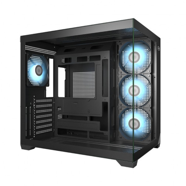 Завдяки панорамному вікну, цей корпус забезпечує безперешкодний панорамний огляд компонентів завдяки подвійним панелям із загартованого скла. Висока прозорість, забезпечуючи огляд на 270°, дозволяє вам повністю оцінити внутрішню начинку вашого ПК та забезпечити ефект занурення в те, що відбувається на екрані.