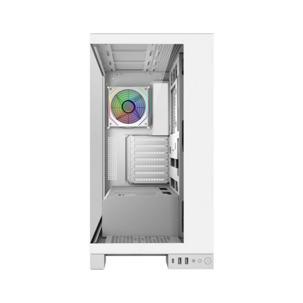 Елегантний корпус для ПК створений для тих, хто цінує поєднання стилю та функціональності. Його сучасний мінімалістичний дизайн гармонійно впишеться як у робочий простір, так і в ігрову станцію, підкреслюючи естетику зібраної системи.