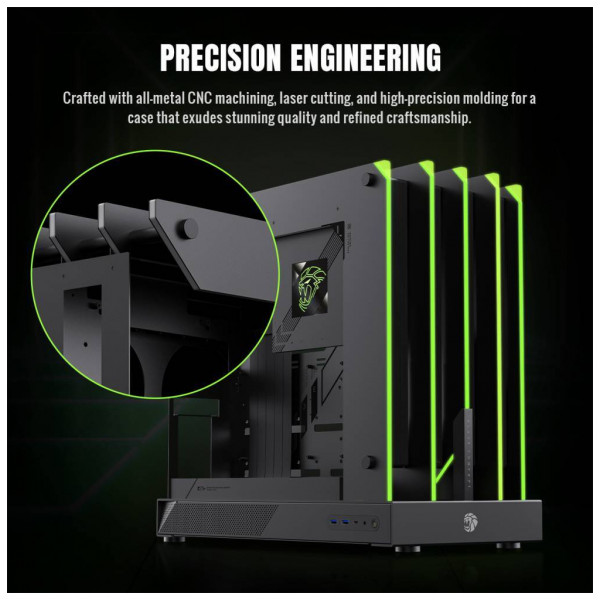 - Відкритий дизайн забезпечує максимальний потік повітря та відсутність сліпих зон, блискуче демонструючи вашу збірку з будь-якого ракурсу.