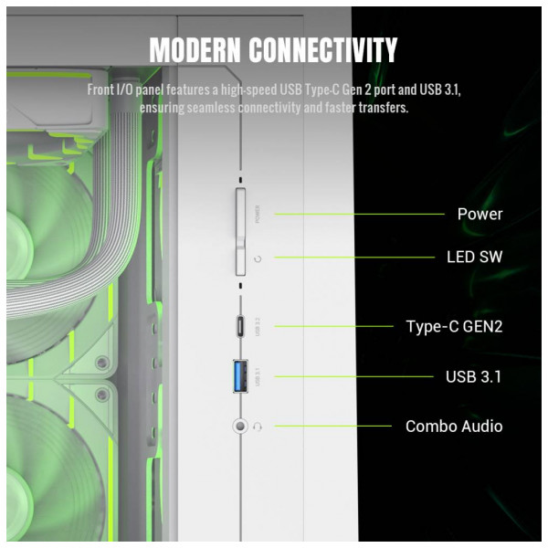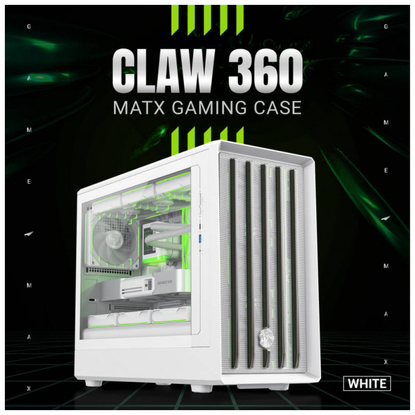 Корпус Claw 360 WH поєднує стильний агресивний дизайн, відмінні можливості для охолодження та продуману ергономіку, створюючи ідеальну основу для потужної геймерської системи.