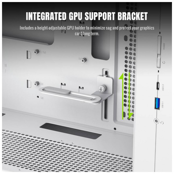 - Надійність і захист відеокарти – у стандартній комплектації є регульована за висотою опора для графічного адаптера.