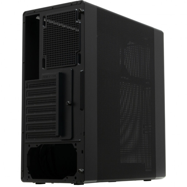 Внутрішній простір корпусу передбачає один відсік для накопичувача формату 3.5 дюйма і один для 2.5 дюйма, що забезпечує достатньо місця для зберігання даних. Також у цьому корпусі є 7 слотів розширення, які дозволяють додати різноманітні комплектуючі для розширення функціональності системи.