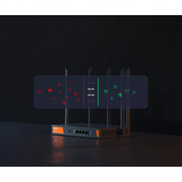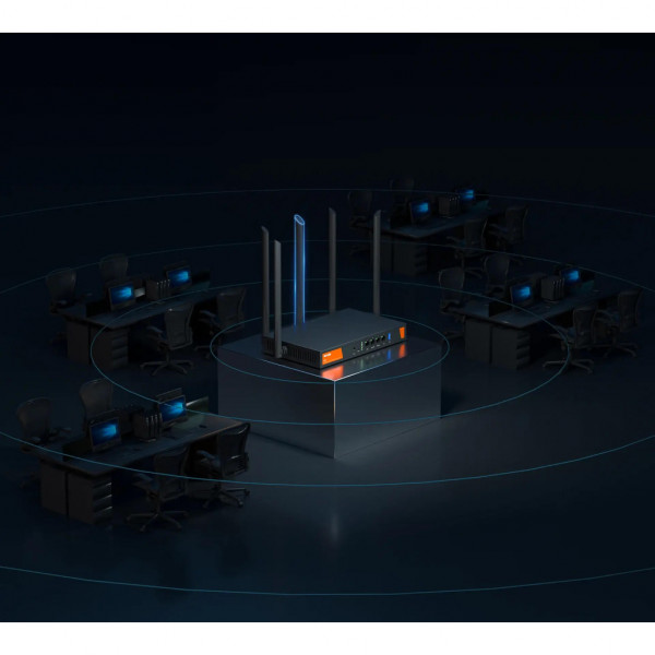 Маршрутизатор TENDA W30E Hotspot AX3000 підтримує Wi-Fi 6 зі швидкістю до 3000 Мбіт/с, оснащений 4 гігабітними портами та п’ятьма антенами для покриття до 500 м². Підтримує до 200 користувачів одночасно, має балансування навантаження WAN та функції безпеки для бізнес-мереж.