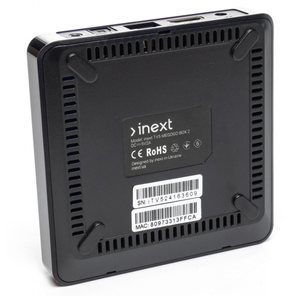 Inext TV5 MEGOGO BOX 2 – нова версія медіаплеєру, з багатим функціоналом, збільшеним об'ємом пам'яті, зручним керуванням та широкими можливостями підключення в невеликому корпусі. Його основне завдання – якісне відтворення вашого улюбленого контенту: відео, фото та аудіо файлів у форматі 4K UHD. При включенні приставки спрацьовує автозапуск сервісу MEGOGO та відразу ж можна почати вибір контенту, який вас цікавить. Якщо ж потрібно зайти в YouTube, браузер або іншу програму, Ви можете вийти з програми MEGOGO в головне меню приставки. Пристрій оснащений новим потужним чипсетом Allwinner H313 та дводіапазонним модулем WiFi 2.4/5 GHz, а також, операційною системою Android10.