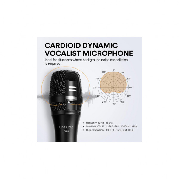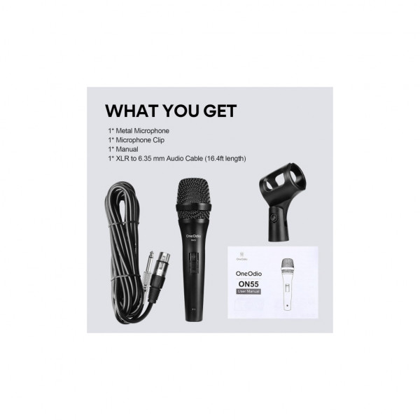 Мікрофон OneOdio ON55 — це професійний дротовий вокальний мікрофон, призначений для використання на сцені, в студії та на караоке-вечірках. Він поєднує високу якість звуку, зручність у використанні та міцну конструкцію.