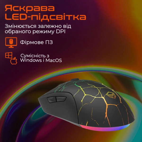 Миша оснащена шістьма програмованими кнопками, включаючи дві бокові, які можна налаштувати під макроси чи швидкі команди через фірмове ПЗ (доступне для Windows та Mac OS). Це відкриває безліч можливостей: від швидкого перемикання зброї до виконання складних комбо в один клік. Технологія Plug & Play гарантує миттєве підключення — достатньо вставити кабель довжиною 1.5 м у USB-порт, і миша готова до бою.