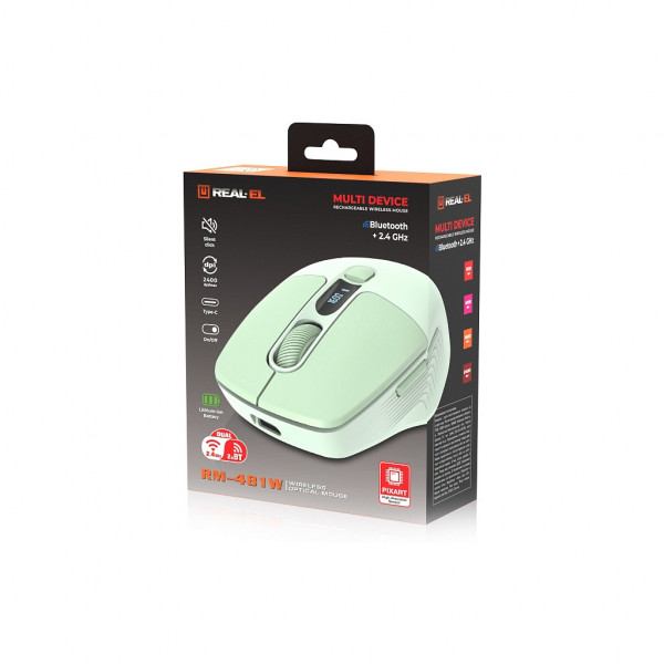 Real-El RM-481W — це сучасна бездротова оптична миша, у якій гармонійно поєднуються стильний зовнішній вигляд, продумана ергономіка та широкий функціонал. Модель створена для комфортної роботи, навчання й розваг, пропонуючи зручне керування та стабільну роботу в різних сценаріях використання.