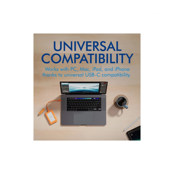 Універсальна сумісність дозволяє легко підключати накопичувач до Mac, Windows, iPad і навіть iPhone через інтерфейс USB 3.2 Type-C, що забезпечує максимальну гнучкість у використанні. А вбудована флеш-пам'ять типу 3D TLC NAND реалізує високу продуктивність і надійність при багаторічній експлуатації.