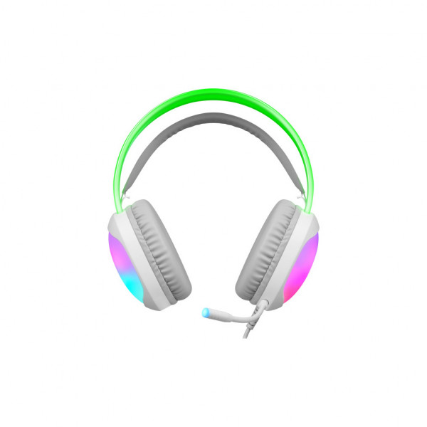 Ця модель в елегантному білому кольорі з матовим покриттям базується на закритій акустичній конструкції з повнорозмірними накладними амбушурами, що забезпечують максимальну ізоляцію від зовнішнього шуму та м’яке обволікання вух, з діаметром динаміків 50 мм для чіткого відтворення частот від 20 до 20 000 Гц та чутливістю 112 дБ, роблячи її ідеальною для конкурентних баталій чи тривалих стрімів, де кожен звук — від кроків ворога до вибухів — лунає з реалістичною глибиною та насиченістю. Сумісна з широким спектром пристроїв через дротовий USB-конектор з довжиною кабелю 2 м, гарнітура встановлюється plug-and-play без драйверів, з всенаправленим мікрофоном з чутливістю -38 дБ та діапазоном 100–10 000 Гц для кришталево чистого спілкування в командних іграх чи дзвінках, перетворюючи потенційний шум на стабільний потік голосу без спотворень.