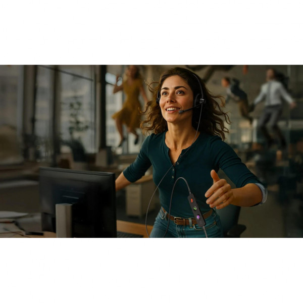 EPOS IMPACT 100 MS Stereo — це професійна дротова гарнітура, створена для чіткої комунікації та максимального комфорту. Надлегка конструкція вагою лише 76 г, м’які амбушюри зі шкірзаму та якісний мікрофон із шумопригніченням забезпечують природне звучання голосу навіть у гучному офісі. Підключення через USB-C або USB-A робить модель універсальною для роботи з ПК, ноутбуками чи смартфонами.