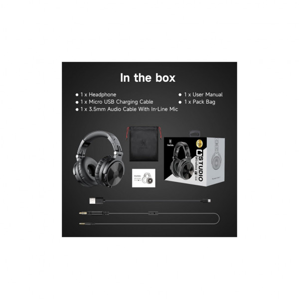 складна конструкція; діаметр динаміка 50 ммємність акумулятора: 1000 магкомплектація: навушники, чохол, аудіокабель 3.5 мм із вбудованим мікрофоном, зарядний кабель
