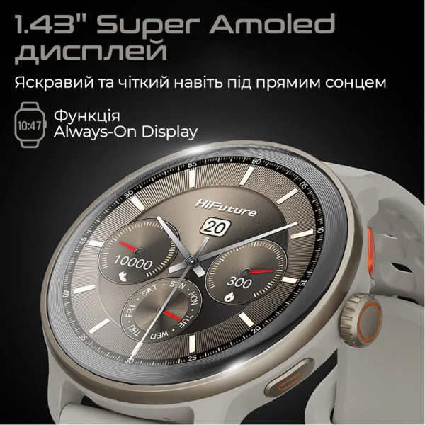 - 1.43" Super Amoled дисплей: Яскравий та чіткий навіть під прямим сонцем, з функцією Always-On Display для миттєвого перегляду часу та повідомлень - комфортно та зручно кожної миті.