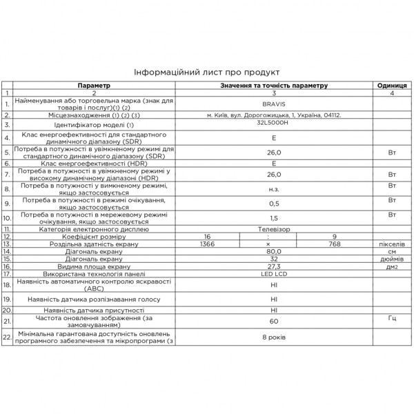 Телевізор BRAVIS 32L5000H — це поєднання сучасних технологій, високої якості зображення та звуку, що робить його чудовим вибором для будь-якої оселі. Гарантія на 12 місяців забезпечує додаткову впевненість у правильності вибору.