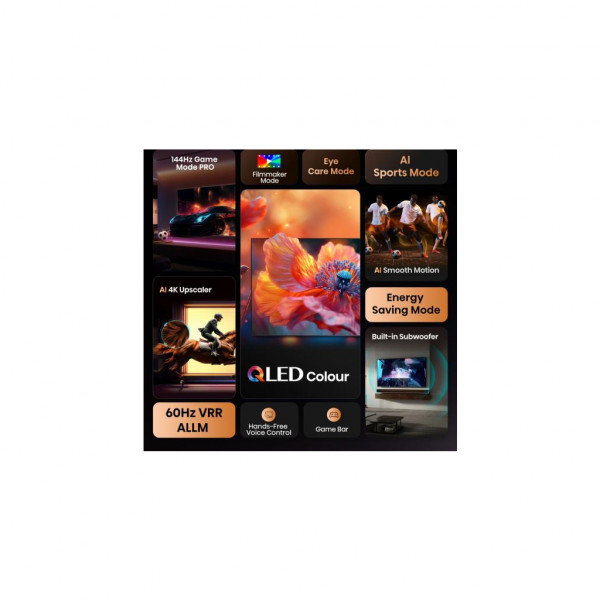 Насолоджуйтеся природним і чітким зображенням завдяки передовим технологіям, як-от MEMC (технологія оцінки та компенсації руху) і зниження рівня 3D-шуму, вбудованим у надчутливу панель. З технологією AI Smooth Motion проблема розмиття руху залишилася в минулому. Динамічні спортивні події чи напружені ігрові сцени — кожен рух і різкий поворот відтворюються з бездоганною чіткістю, забезпечуючи плавне та реалістичне зображення.