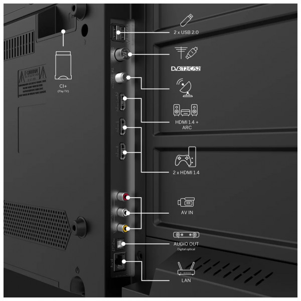 3 x HDMI; Headphone; 1 x RJ-45; 2 x USB; CI; COAX Out