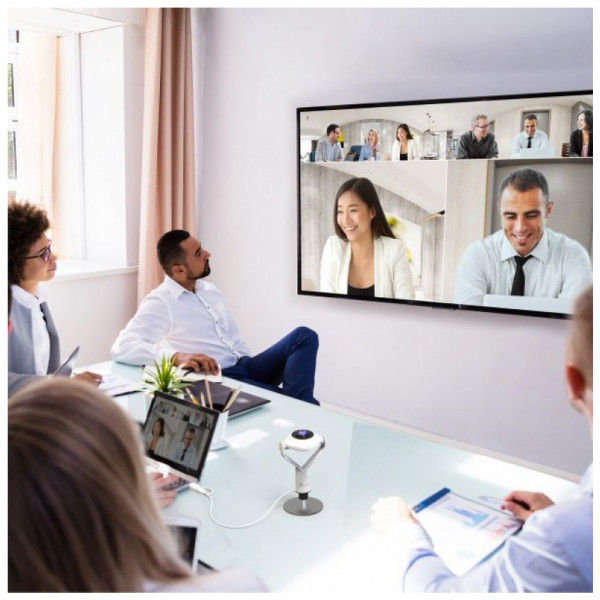 Покращуйте якість своїх конференц-дзвінків за допомогою веб-камери 360° All Around Webcam. Цей універсальний пристрій для віртуальних зустрічей поєднує HD-відео з чіткістю звуку бізнес-класу, що допомагає безперебійно проводити відеоконференції. Ця веб-камера з підтримкою технології Plug-and-Play ідеально підходить для будь-якого приміщення. Знімайте 360° панорамний вид кімнати або фокусуйтеся на конкретних доповідачах за допомогою різних режимів відображення. Веб-камера 360° All Around Webcam оснащена кабелем USB-C і роз'ємом USB Type-A, що дозволяє використовувати її як зі старими, так і з новими пристроями. Для найкращої якості зображення рекомендуємо завантажити оновлення прошивки JVCU360 з нашої сторінки завантажень, на яку можна перейти, натиснувши тут.